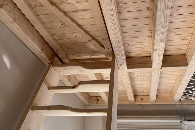 • Réalisation de l’ossature bois, charpente, isolation, couverture