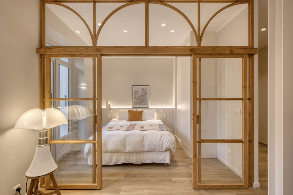 Elle permet de créer une séparation visuelle entre deux pièces, sans perdre en lumière ni en sensation d’ouverture.
